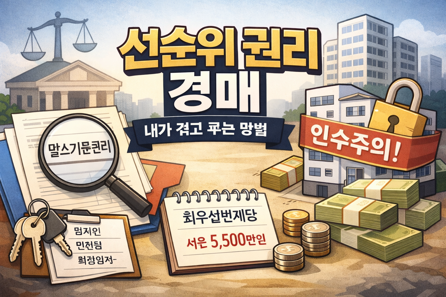 경매 공부를 조금만 해도 말소기준권리 이야기가 먼저 나오죠. 말소기준권리를 기준으로 뒤에 있는 권리는 소멸 가능성이 크고, 앞에 있는 권리는 남을 수 있다는 감각이 생겨요. 근데 여기서 자주 생기는 착각이 있어요. 말소기준권리만 잡으면 선순위가 자동으로 정리된다고 믿는 거예요.