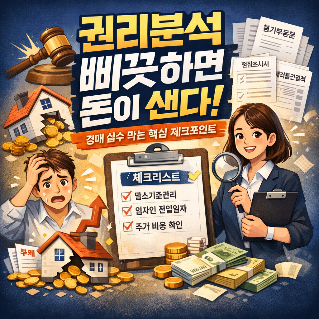 통장 내역을 정리하다가 경매 공부를 다시 붙잡게 되는 날이 오더라고요. 낙찰가가 시세보다 싸 보이면 마음이 급해지는데, 그때 권리분석에서 한 줄을 놓치면 돈이 새요. 특히 인수해야 하는 권리가 1건만 숨어 있어도 추가비용이 수백만 원에서 수천만 원까지 뛰곤 하죠. 내 기준으로는 입찰 전 최소 30분, 서류만 제대로 읽어도 사고 확률이 확 떨어졌어요.