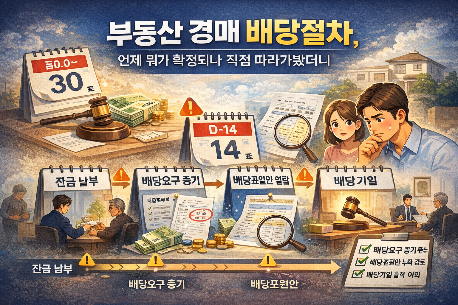 | 잔금 납부 직후 | 배당기일 지정·통지 | 통지서 도착 여부, 일정 캘린더 등록 |